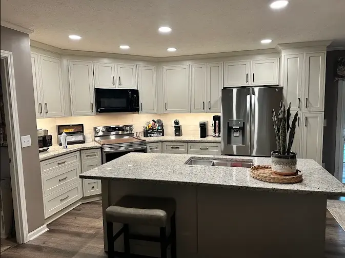 Instead of just specializing in full bathroom remodels. Our skilled team handles everything under one roof, from stunning kitchen renovations and custom vanity cabinets to durable LVP flooring and flawless paint and drywall.